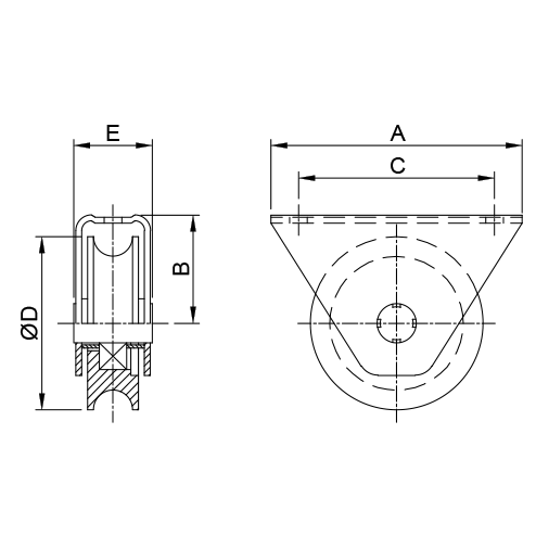Ces ferrures sont installées sur les portes coulissantes pour faciliter le déplacement de la porte sur le rail. Les roues ou galets en applique avec gorge U de 20 mm sont disponibles dans des dimensions différentes et matériaux différents: acier et acier inoxydable.