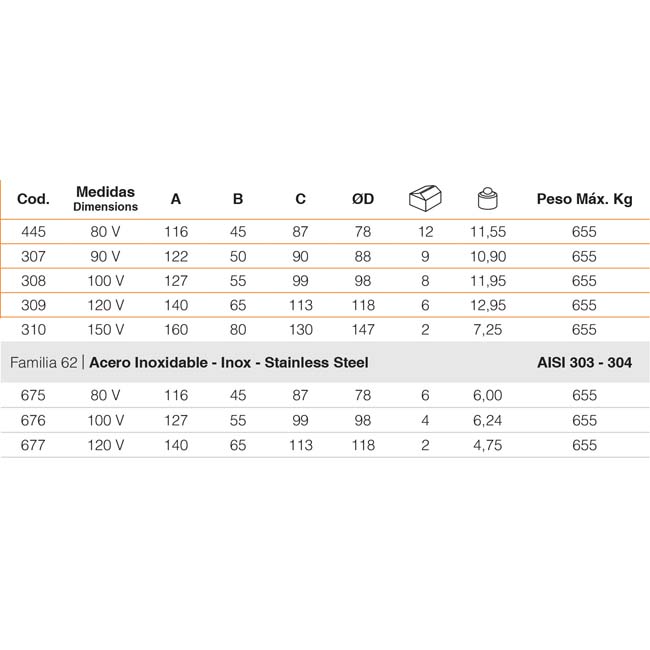 Nous fabriquons ces roues ou galets dans des dimensions différentes et dans des matériaux différents: acier et acier inoxydable.